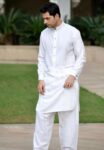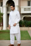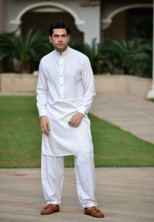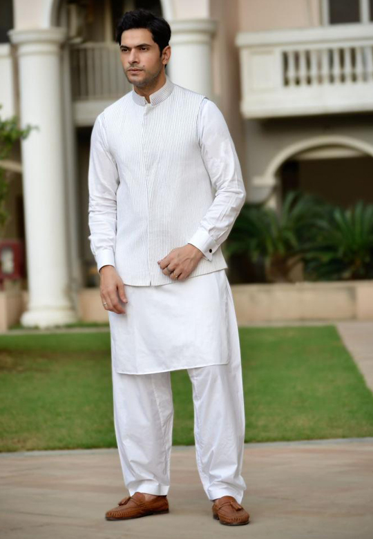 Kurta with black thread pintex having long placket.combine with Bundi having all over black thread pintex work.styled with cufflinks